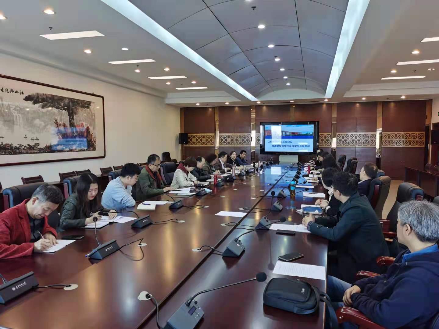 路福平强调,科研平台建设对学校推动高水平特色大学建设至关重要。社科处、学院、各平台要发挥好各自职能,充分发挥科研平台在科学研究、人才培养、学术交流、成果转化与社会服务中的功能,以科研平台高质量建设推动学校高质量发展,为加快建设拥有世界一流学科的高水平特色大学做出贡献。